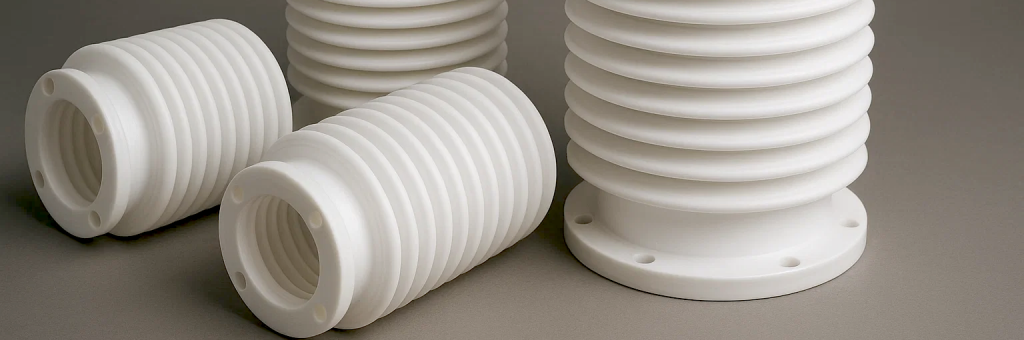 Notre gamme comprend aussi la fabrication de soufflets usinés sur mesure en PTFE (Teflon®).